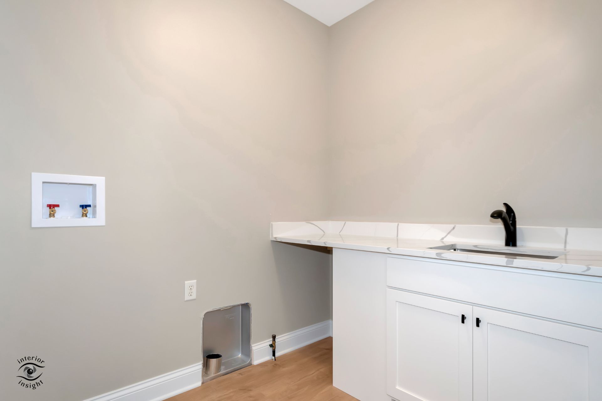 • Spacious laundry room w/sink, custom cabinetry, and quartz countertop.